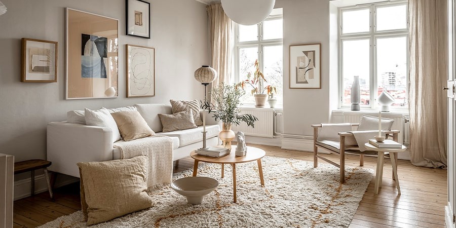 Colors play a major role in setting the mood of your living room. Neutral shades like beige, white, and grey create a calm and elegant look.